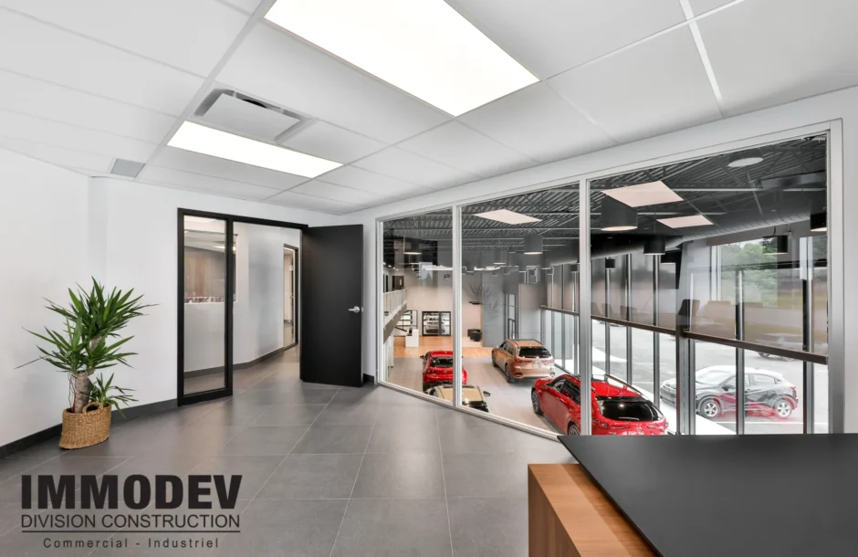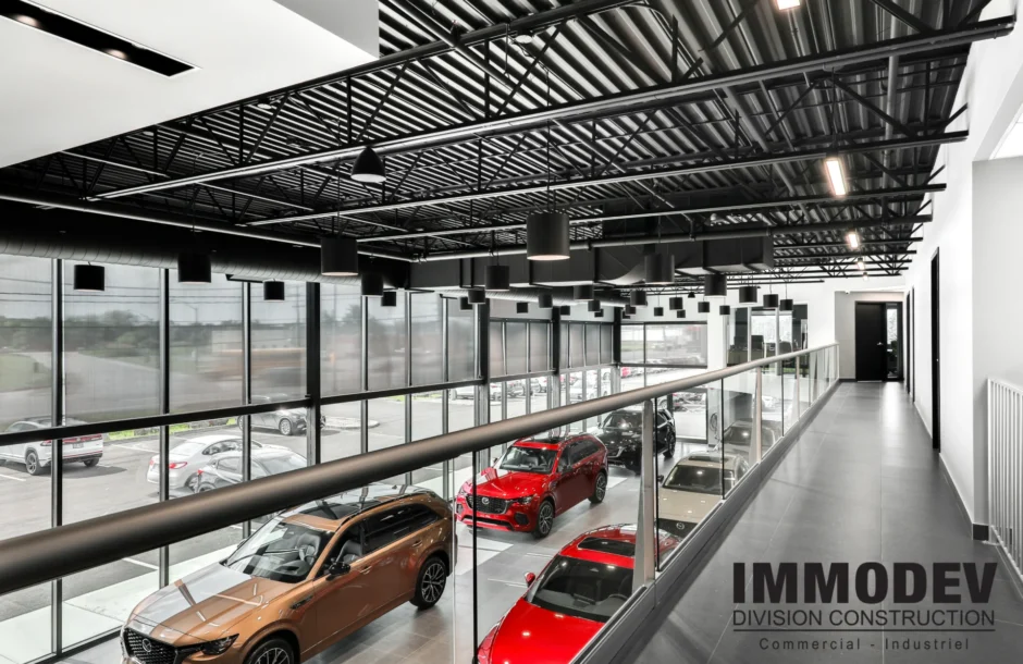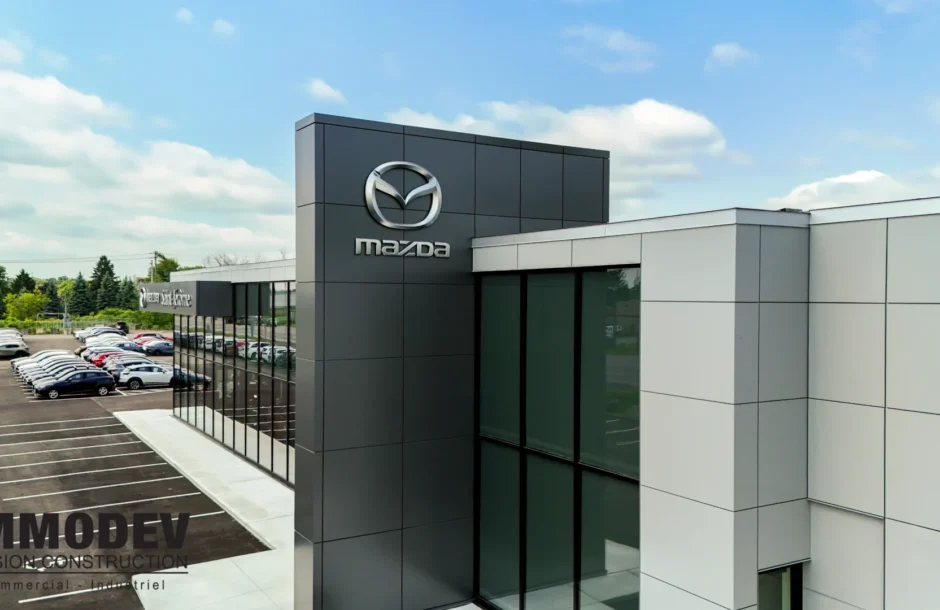 Notre équipe est fière de présenter sa plus récente réalisation soit, la relocalisation du concessionnaire automobile Mazda de Saint-Jérôme. Un projet qui reflète notre savoir-faire et notre engagement envers l’excellence. Pensé pour offrir une expérience client moderne et agréable, l’espace se distingue par son design lumineux, ses installations à la fine pointe et son aménagement fonctionnel. Chaque détail porte notre signature : rigueur, efficacité et qualité.